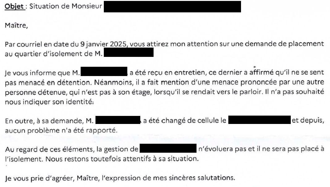 Mots clés et tags : avocat des détenus, avocat isolement, avocat QI, avocat à l’aide juridictionnelle, droit pénitentiaire, avocat Val-de-Marne, avocat pénaliste Val-de-Marne, avocat droit pénitentiaire, avocat droit des détenus, droits des prisonniers, placement à l'isolement, QI, quartier d'isolement, conditions de détention indignes, aide juridictionnelle, cour européenne des droits de l’homme